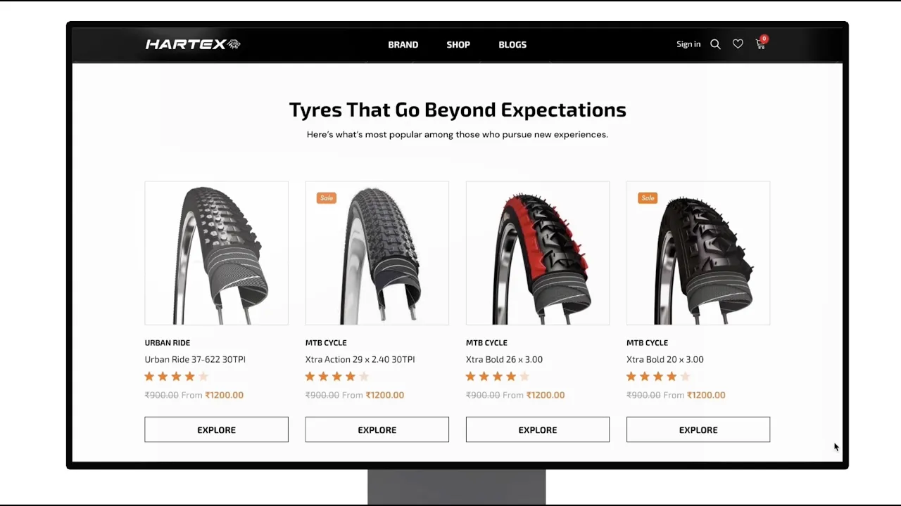 Ecom website for a leading manufacturer of bicycle tyres and tubes in India